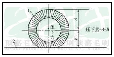 ????????刷輥對(duì)鋼帶的作用力的大小直接影響到清洗效果和刷輥的壽命,一般通過(guò)調(diào)整刷洗輥的壓力和壓下量來(lái)控制。壓下量指毛刷輥在受到壓力以后刷毛在鋼帶表面產(chǎn)生變形的量,如圖一所示: